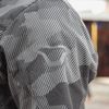 O Riggor é adequado para condições de pilotagem frias, amenas e quentes com seu forro Raintex ML removível que pode ser facilmente retirado. É confortável na pele, pois é laminado diretamente contra o tecido de malha. Para os dias mais quentes, colocamos um zíper de ventilação na frente e uma saída de ar na parte traseira para que o ar possa realmente passar e resfriar o corpo.